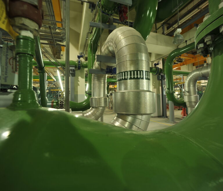 - Chilled water is pumped through a network of underground insulated pipes to the customers’ building